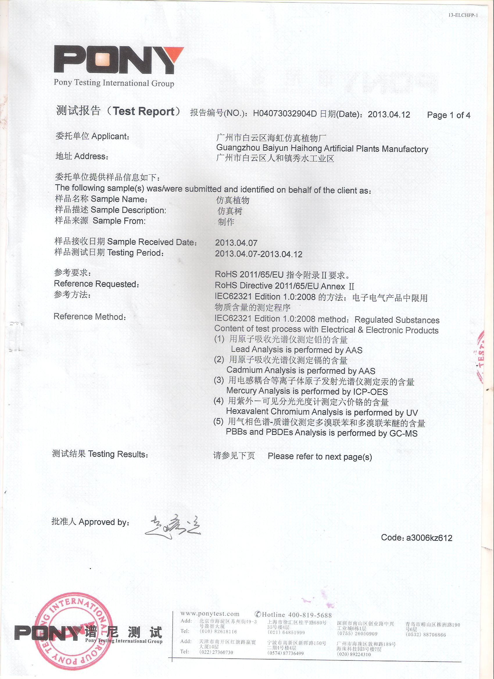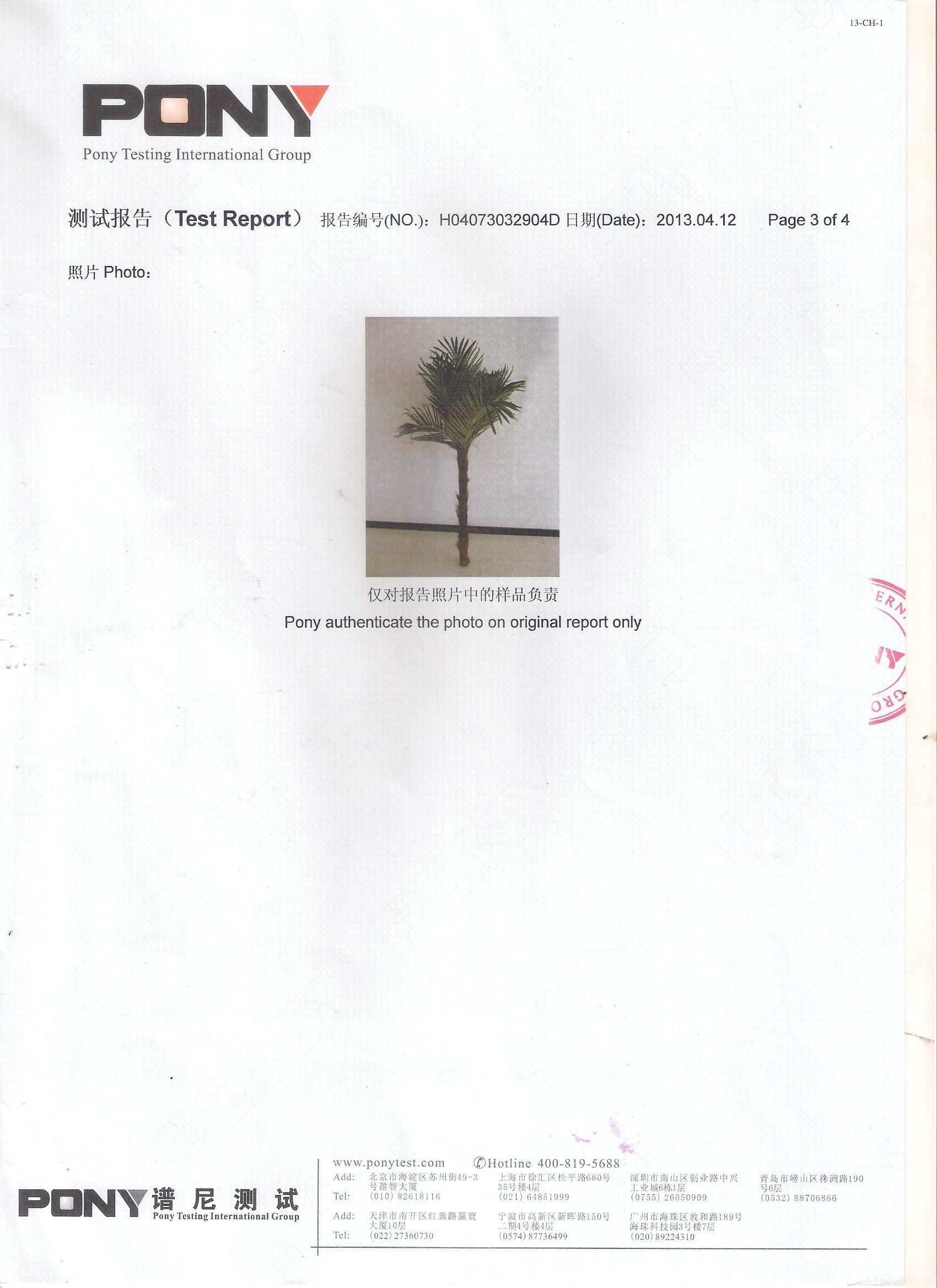گواهی حفاظت از محیط زیست گیاه نخل مصنوعی بزرگ HAIHONG