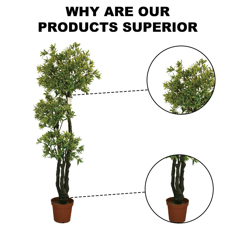 درخت مصنوعی پودوکارپوس گیاه سبز جعلی 1.6 متری داخل رستوران باغ بالکن بدون پرستاری آسان برای تمیز کردن