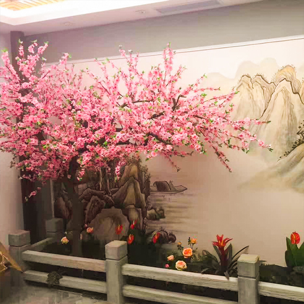 زینت باغ دکوراسیون داخلی گیاهان مصنوعی درخت بونسای جعلی گل صورتی سفید درخت ساکورا درخت هلو